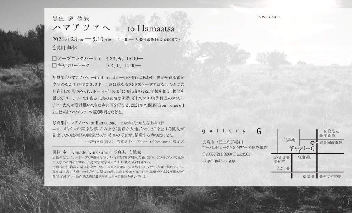 写真集 ハマアツァへ to Hamaatsa 2026年04月24日New シェア ツイート シェア はてブ 送る ◆新刊のご案内◆ 『写真集 ハマアツァへ to Hamaatsa』 管啓次郎氏推薦! ニューメキシコの高原砂漠、この上なく清浄な大地。ひとりそこを旅する彼女が見出したのは物語の回帰だった。 彼女の写真が、循環する時の窓になる。 著者の黒住奏さんはいろんな顔を持っている。 大学の教員、写真家、エッセイスト、母親…。家族と里山で暮らす。 そんな氏ならではの、写真とエッセイが融合した魅力的な一冊が出来上がった。 黒住奏・著/左右社・刊 B5判変形/上製/64頁/4000円+税